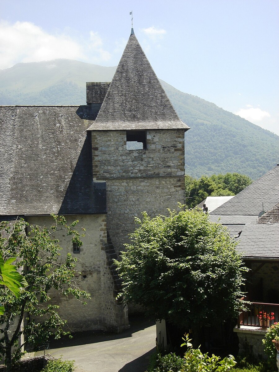 À commencer par son clocher qui est une massive tour carrée du 12ème siècle, puis son évolution par étapes jusqu’à son achèvement au XVlème siècle, cette église est une référence du gothique flamboyant bâtie sur le modèle des édifications méridionales de l’époque : nef unique, chevet polygonal, élégantes grandes fenêtres aux lancettes étroites finement ciselées, certains y voient l'église de Nay en « plus petit » : chute monumentale des toitures, robustes contreforts, porche profond, magnifique portail d’entrée en accolade à triple arcature, base des piédroits en marbre blanc et gris, tableau en grès…